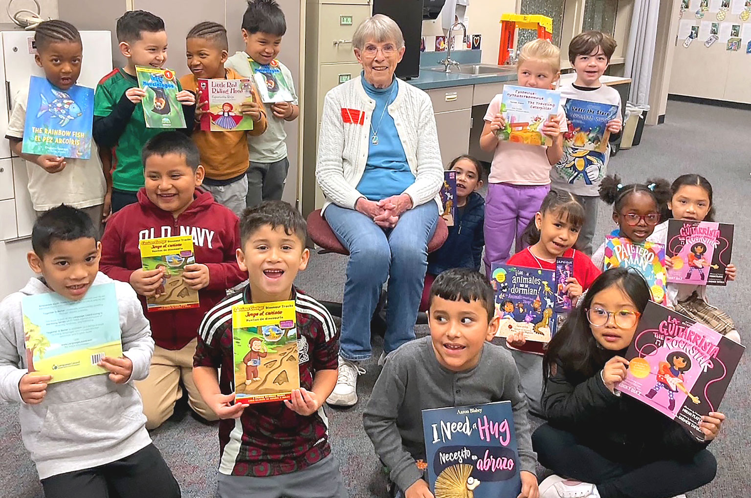 Edie, now 88 years old, says she started at Deer Creek volunteering in kindergarten and first grade, then eventually filling needs in the library. Her love of reading has been a common thread throughout her volunteer work. Cori Waufle, Deer Creek’s principal, says Edie “provides books for Multilingual Learners in their native language” all on her own dime. “I give a book to every child in MLL” up to third grade, Edie explains. “In May, fourth- and fifth-graders can pick out their own books from the book fair; it doesn’t have to be in their language.” When Principal Waufle asks why she has a passion for this, Edie’s reply is simple: “Every student should have a chance.”