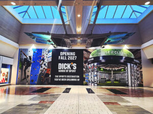 The initiative will install Dick’s House of Sport, a sports-entertainment center to open in fall 2027. In-store activity offerings will include a climbing wall, multiple golf bays with TrackMan-brand simulators and HitTrax-brand multi-sport cages that can be used for baseball, softball and soccer.