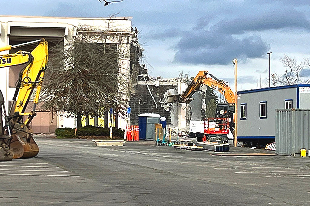 Heavy machinery is chipping away at the former shell of an original landmark anchor department store at Washington Square shopping center, Sears, to make way for a recent-years trend in mall development known as experience retail.